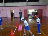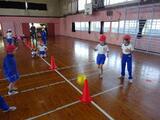 昼休みにAKJ(児童会)主催で、みんなで遊びました。(希望者) 風がとても強かったですが、バウンドドッジボール(ワンバウンドで当てる)ルールを工夫して遊びました。 3分の2の児童が参加していました。