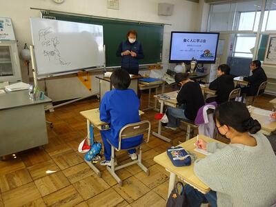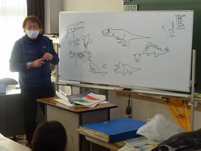 「カメの甲羅は肋骨なんだよ。」とか「草食のカメは首が長くて、肉食のカメは首が短い。」とか児童がへーへーと思うようなお話をたくさんしてくださいました。(ボタンがあったら、みんな連打ですね!)