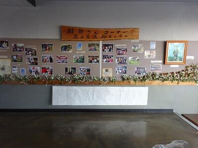 東昇降口には、昭和35年から平成30年までの「軽部様」との交流の記録を掲示した、軽部さんコーナーがあります。