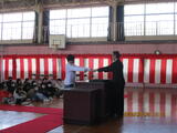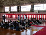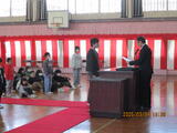 3時間目に、卒業式の全体練習を行いました。   とてもよい姿勢で練習しています。           歌声も響いています。   レッドカーペットや紅白幕の準備もできています。     卒業式に向けて、全員Azmaxで頑張っています。