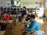 登校の様子です。今日も元気に登校してきました。         移殖をして、やや発芽が遅れていた軽部園の水仙ですが、この気候のためかどんどん開花してきています。